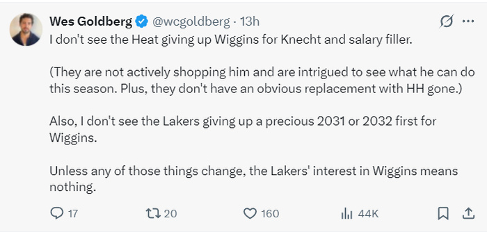 另外,我认为湖人队也不愿意为了交易得到维金斯而付出2031年/2032年的首轮签,除非湖人愿意送出首轮签,不然就算湖人对维金斯有意也没有任何实际意义。
